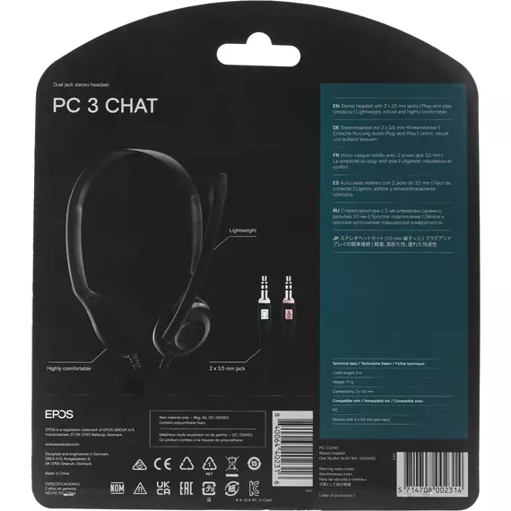 Наушники EPOS PC 3 Chat черный 2м накладные оголовье [1000430]