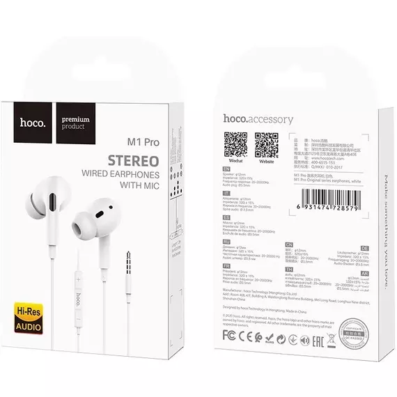 Гарнитура Hoco M1 Pro внутриканальные 1.2м белый проводные в ушной раковине