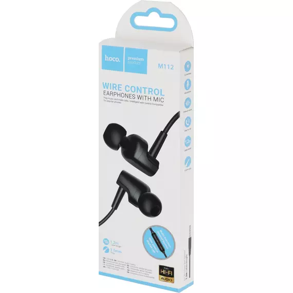 Гарнитура Hoco M112 внутриканальные 1.2м черный проводные в ушной раковине