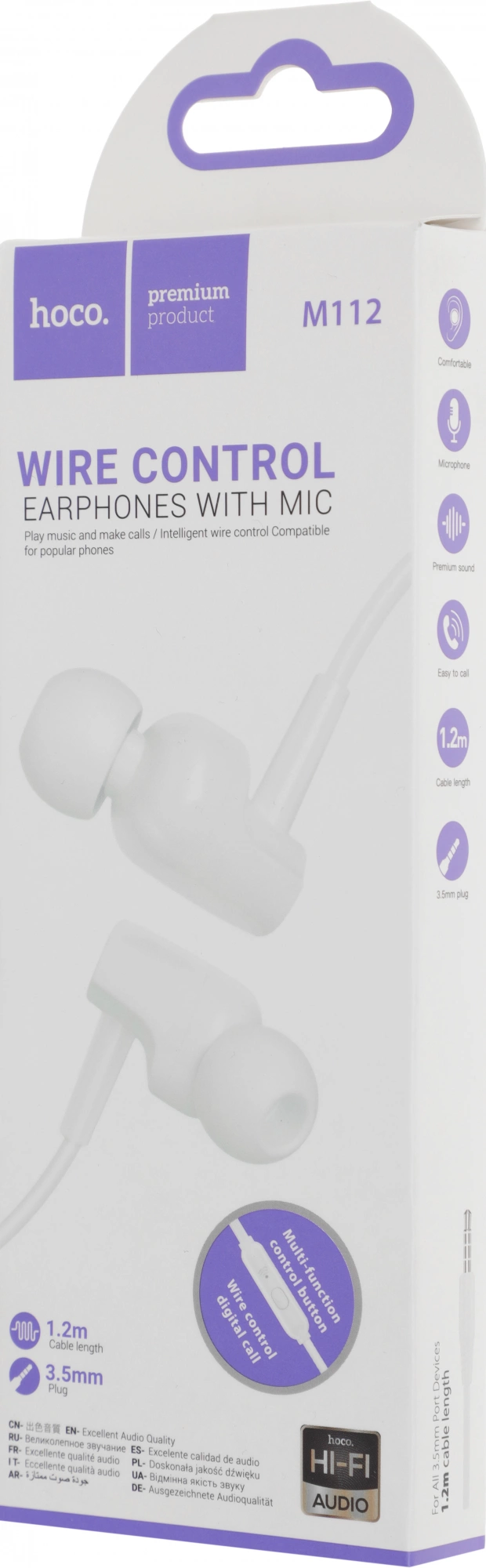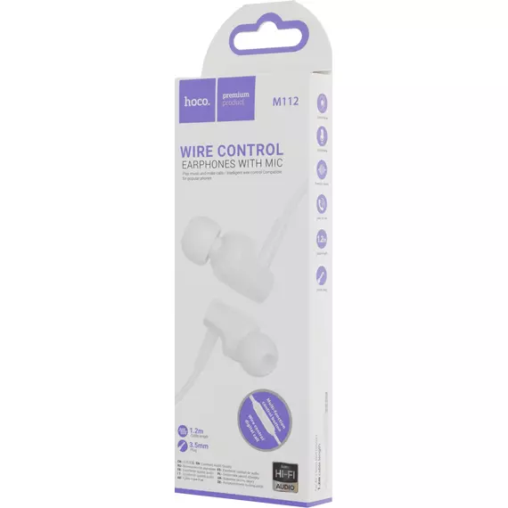 Гарнитура Hoco M112 внутриканальные 1.2м белый проводные в ушной раковине