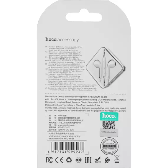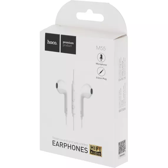 Гарнитура вкладыши Hoco M55 1.2м белый проводные в ушной раковине