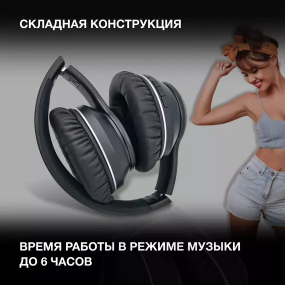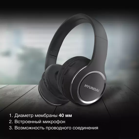 Гарнитура Hyundai H-HP103 черный беспроводные bluetooth оголовье