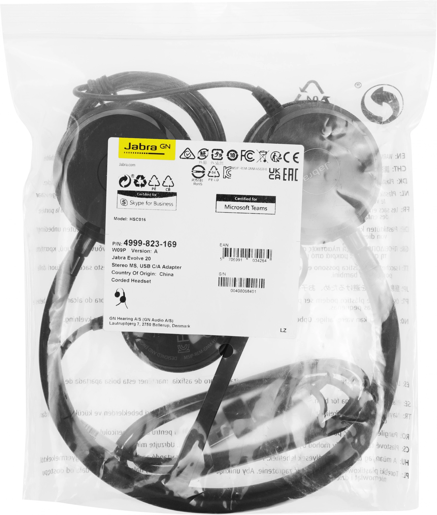 Наушники с микрофоном Jabra Evolve 20 черный накладные USB оголовье [4999-823-169]