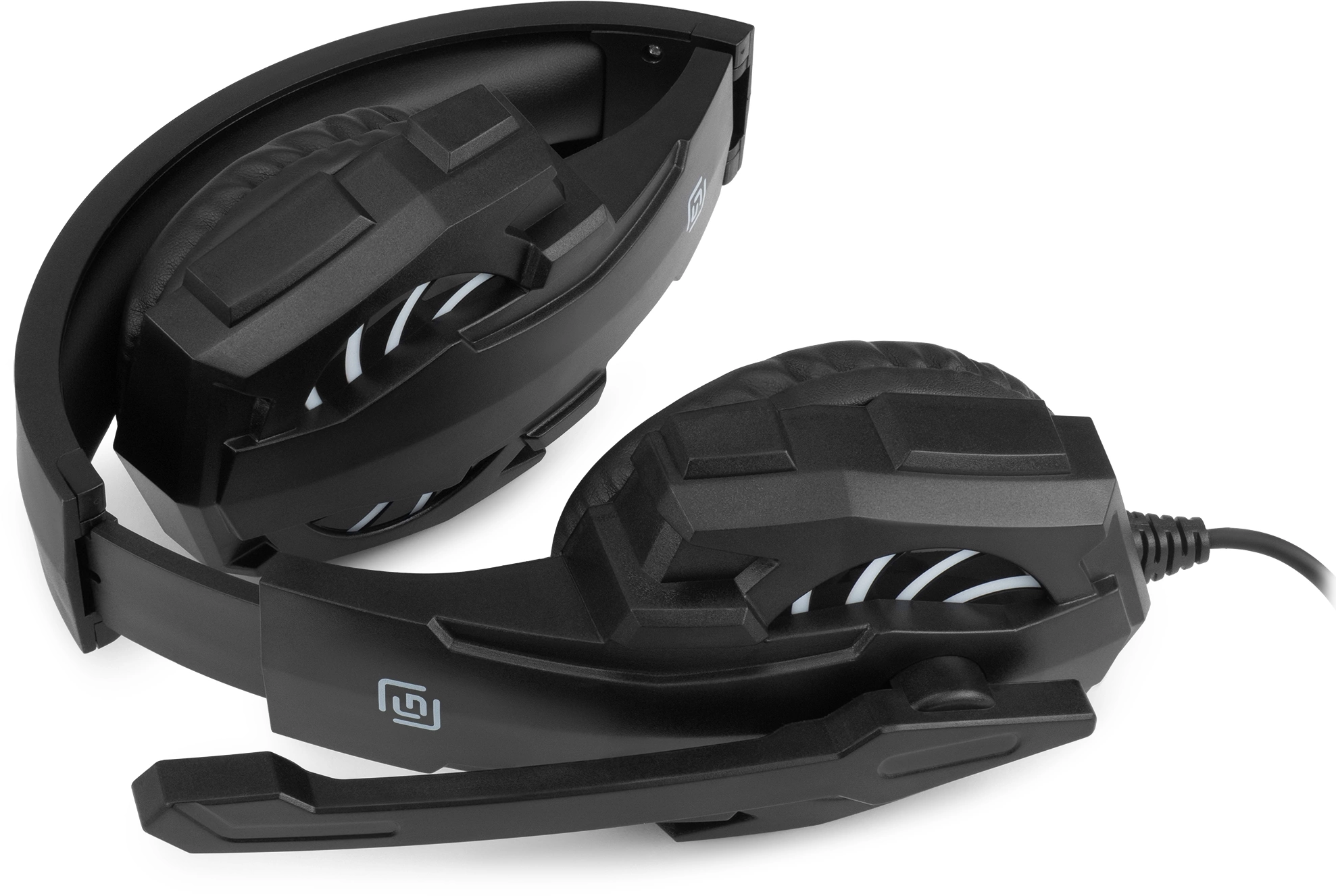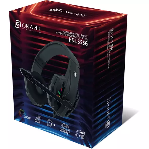 | Особенности | Легкая игровая гарнитура с многоцветной динамической подсветкой. Динамики 40 мм. Складная конструкция обеспечивает компактность при перевозке. Поворотный микрофон можно поднять если не нужно общение. Длинный провод с регуляторм громкости и включением/выключением микрофона. |