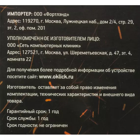 | Срок гарантии | 12 мес. |