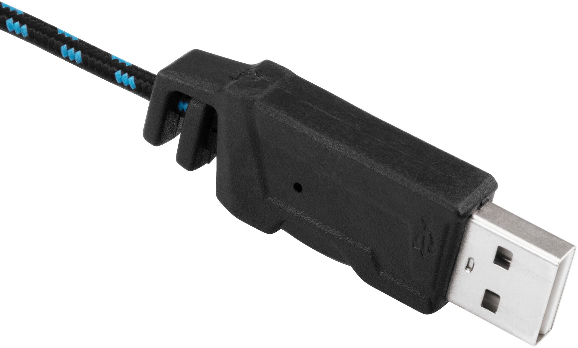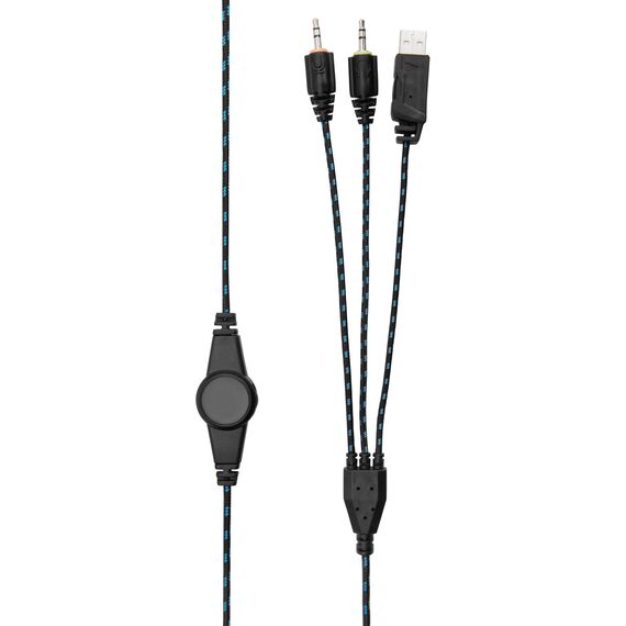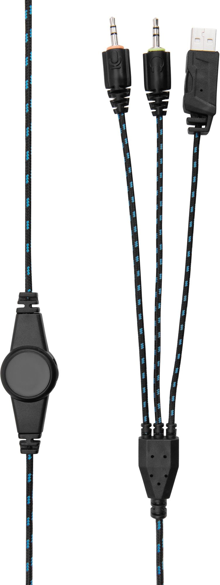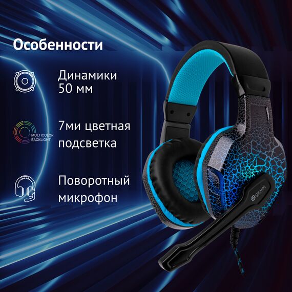 | Особенности | Стильная игровая гарнитура с многоцветной подсветкой, поворотный микрофон, усиленный плетеный провод, управление звуком на проводе |