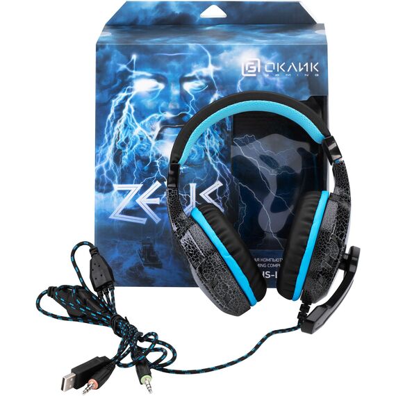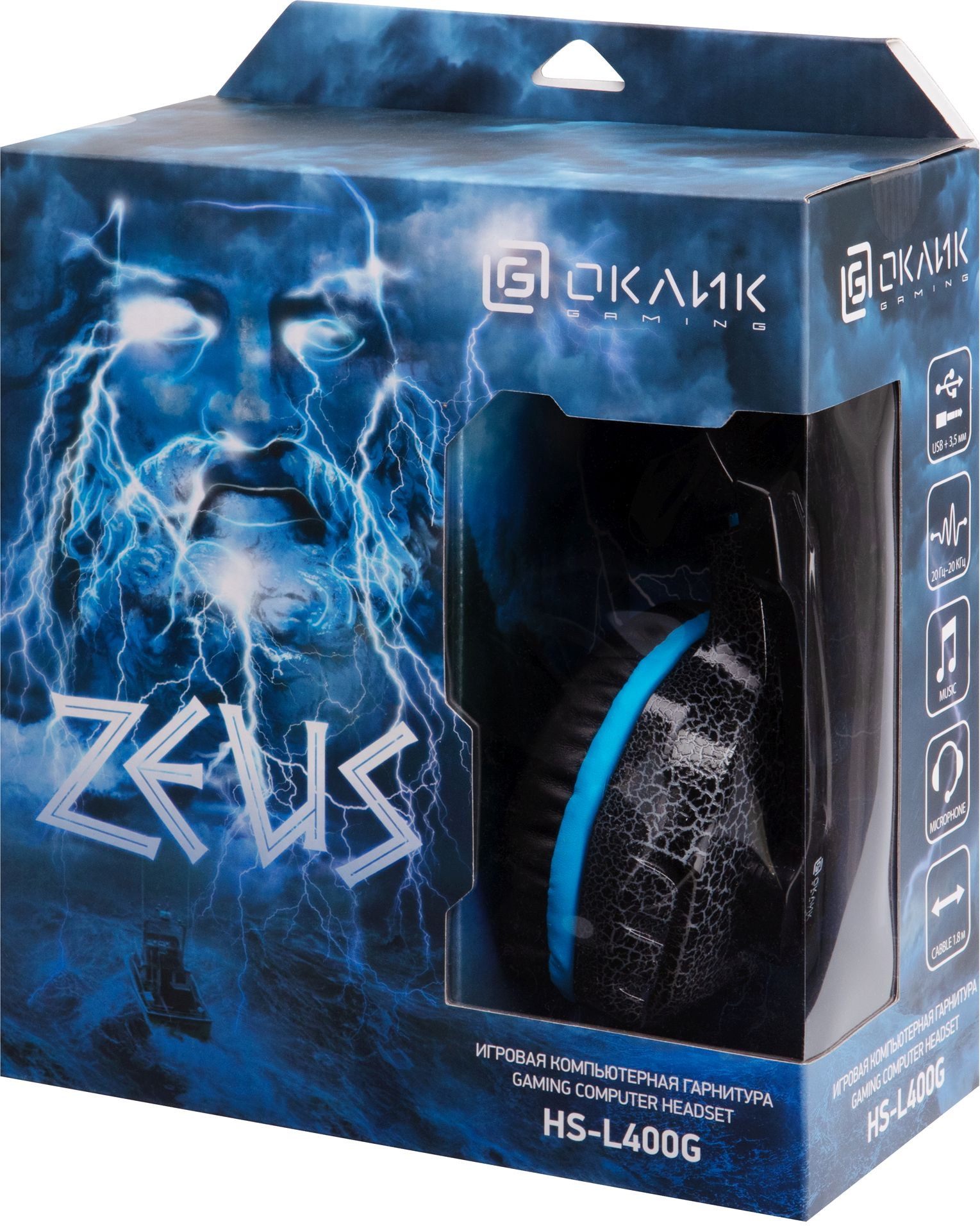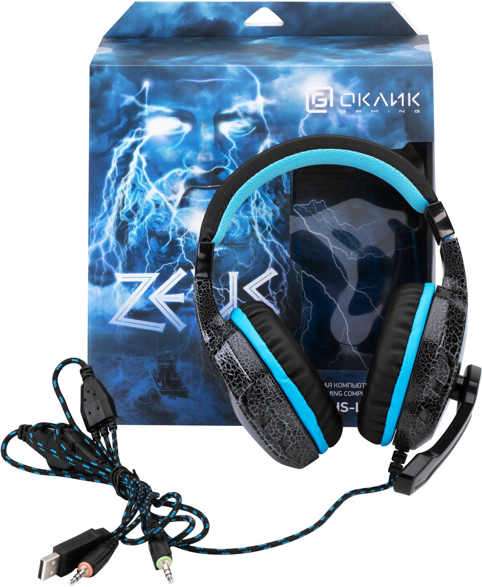 Наушники с микрофоном Oklick HS-L400G ZEUS черный/синий 2.2м мониторные оголовье [359480]