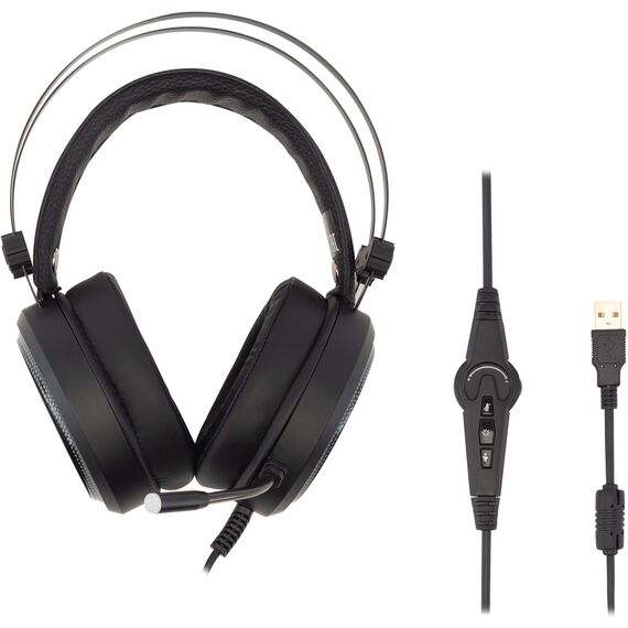 | Особенности | Игровая гарнитура с виртуальным звуком 7.1, динамики 57 мм!. Управление громкостью динамиков, отключение микрофона и подсветкой на проводе, Усиленный плетеный кабель с ферритовым фильтром, Адаптивное оголовье с металлическими направляющими, Пассивное шумоподавление микрофона |