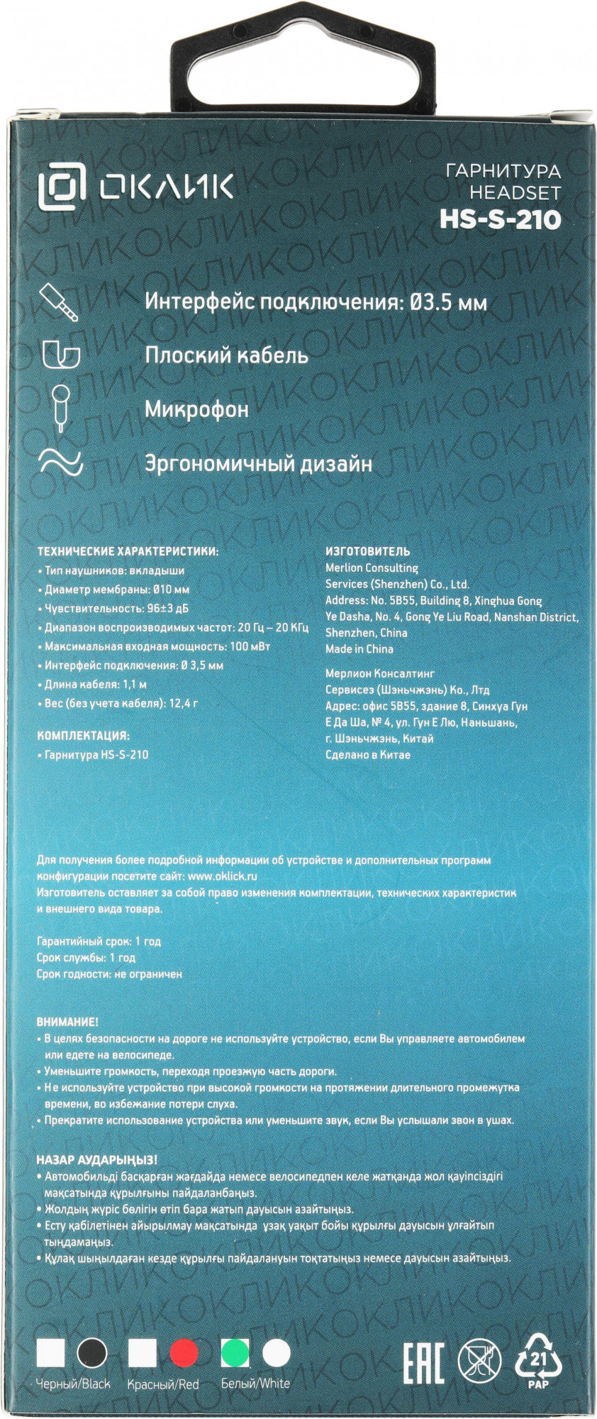 Гарнитура Oklick HS-S-210 внутриканальные 1.2м белый проводные в ушной раковине [D1W]