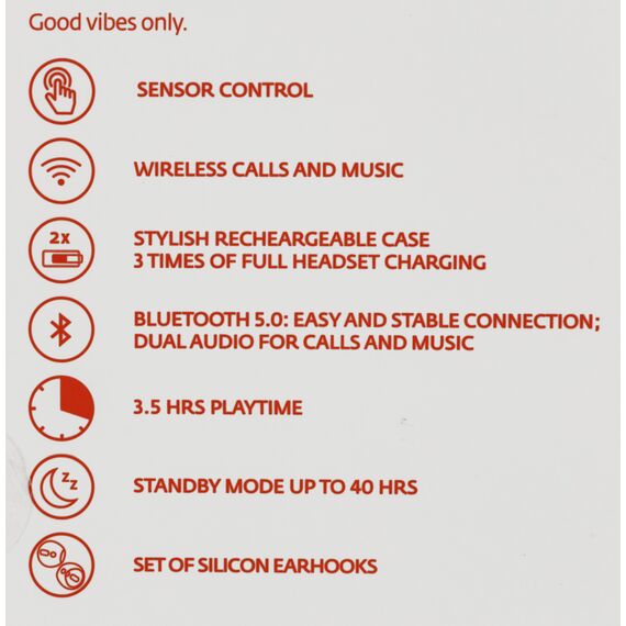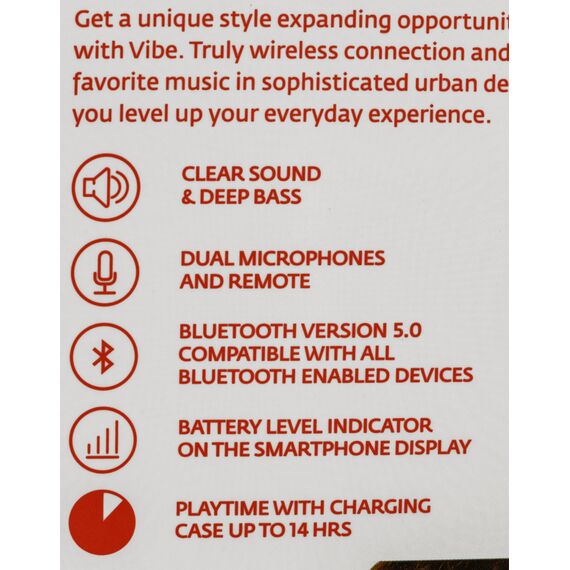 Ощутите полную свободу действий со стильными беспроводными наушниками VIBE. Сенсорный интерфейс позволяет управлять звонками и музыкой не вынимая телефон из кармана. Эргономичный зарядный кейс обеспечивает до 10 часов работы наушников. Глубокий бас, отличное качество звука, диаметр динамика 10 мм.