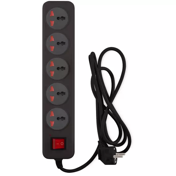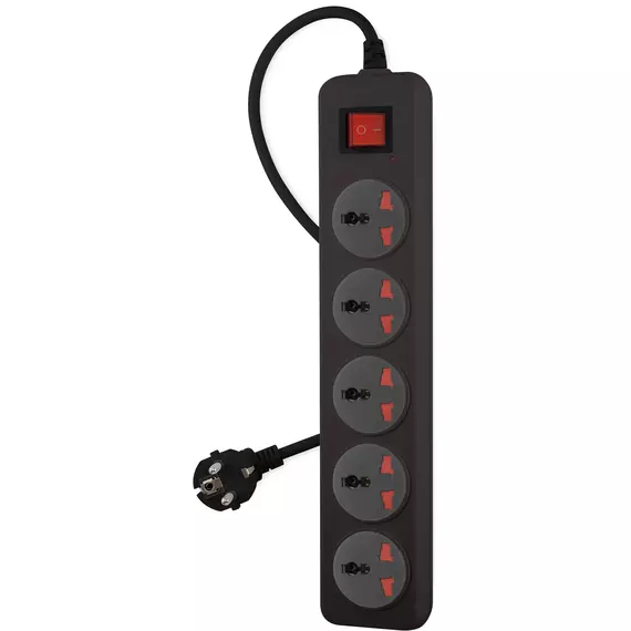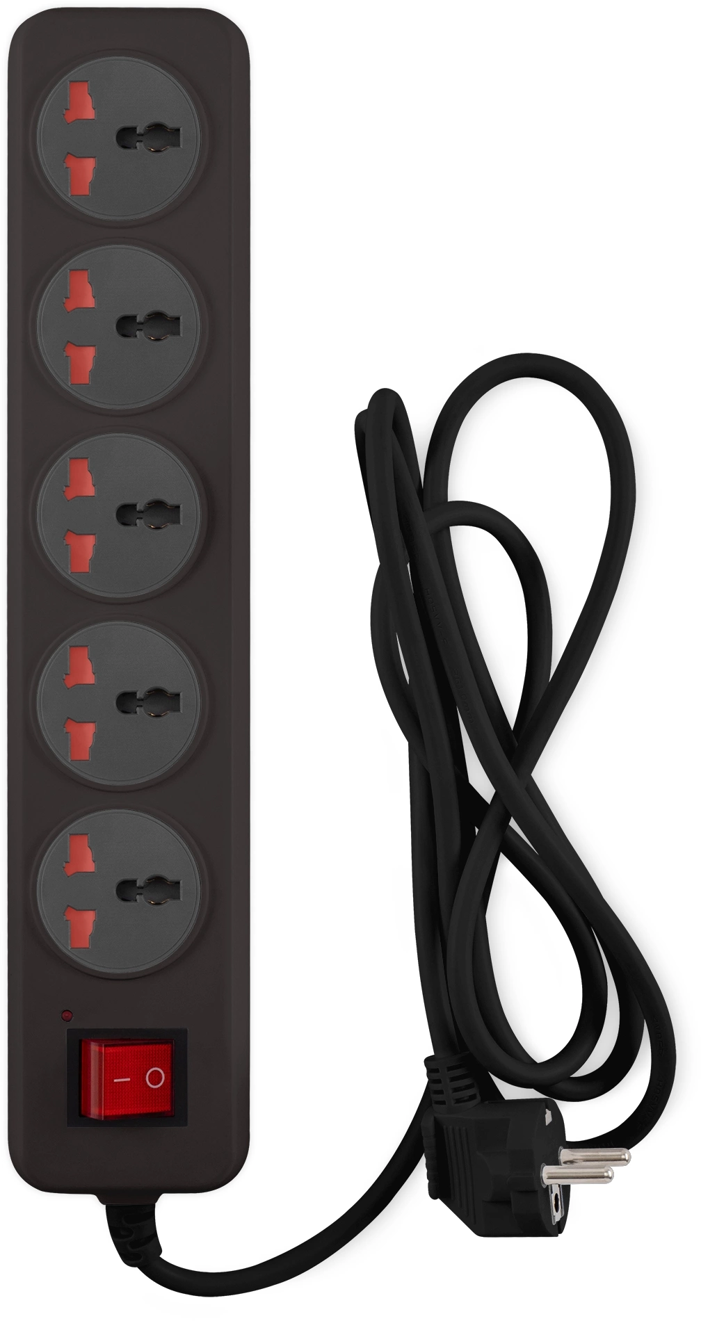 Сетевой фильтр BURO 500UNH-1.8-BG 1.8м (5 розеток) черный/серый (коробка)
