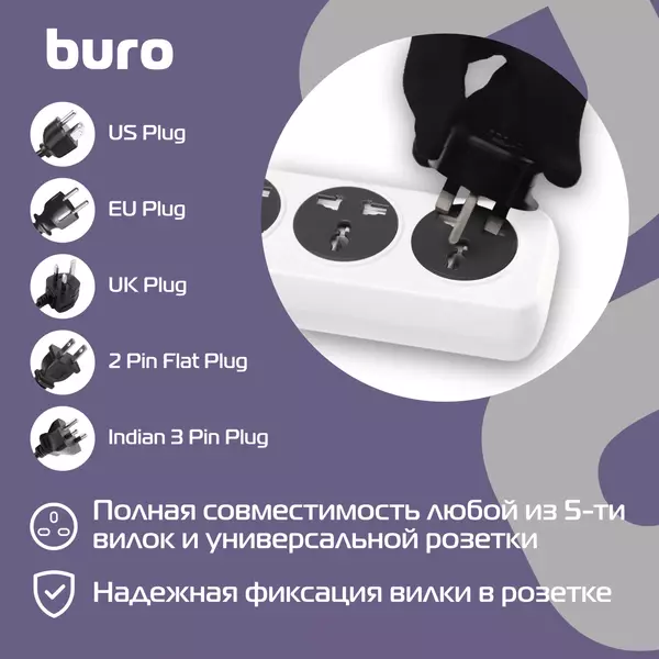 Тип поддерживаемой вилки для универсальной розетки | Type A (USA/China), Type G (Britain/HK), Type I1 (China/India) |
