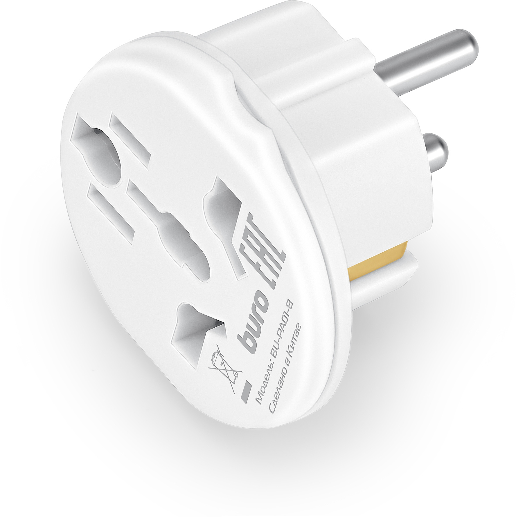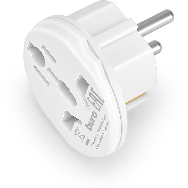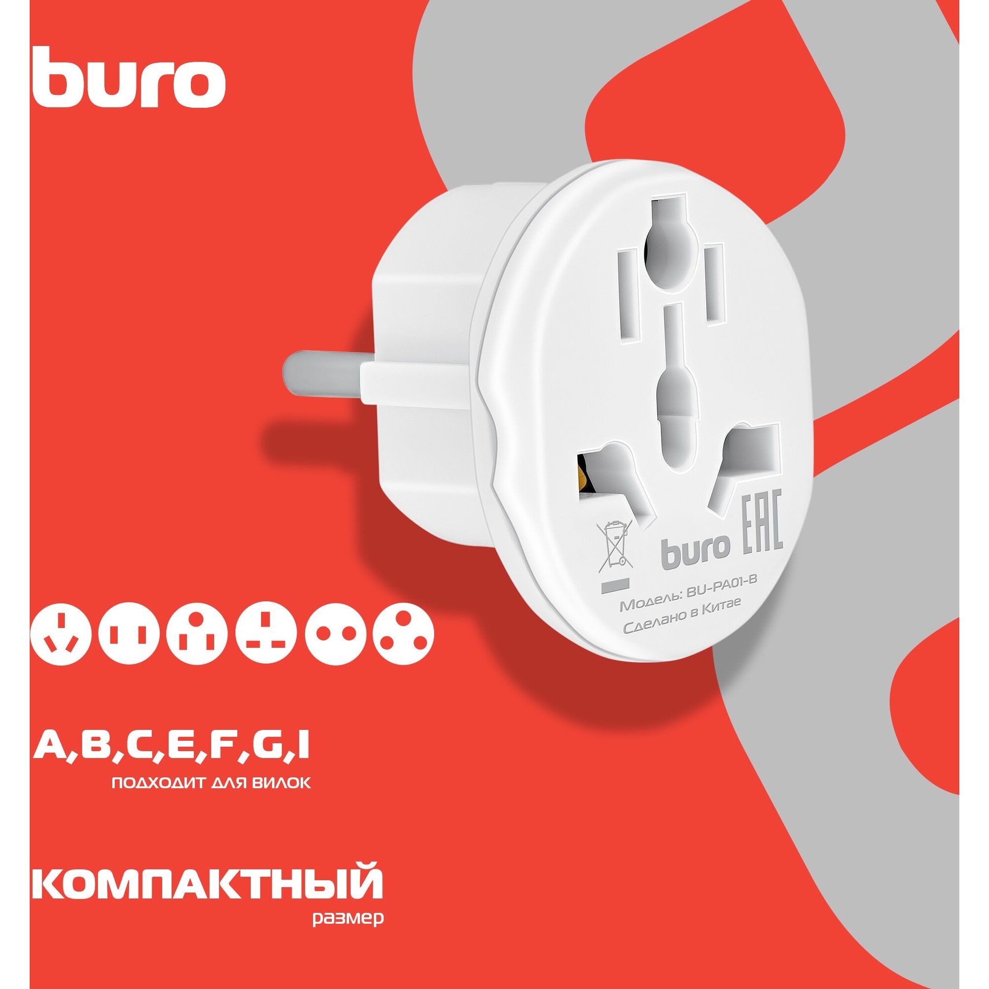 Адаптер-переходник Buro BU-PA01-W 1 розетка белый (пакет ПЭ)