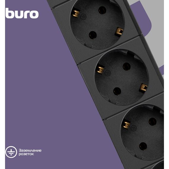 Сетевой фильтр BURO BU-SP5_USB_2A-B 5м (6 розеток) черный (коробка)