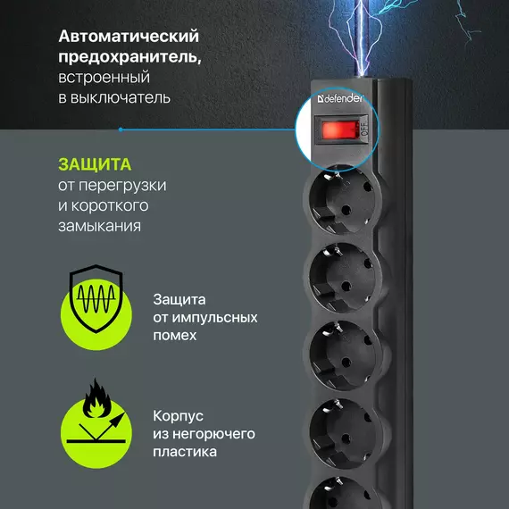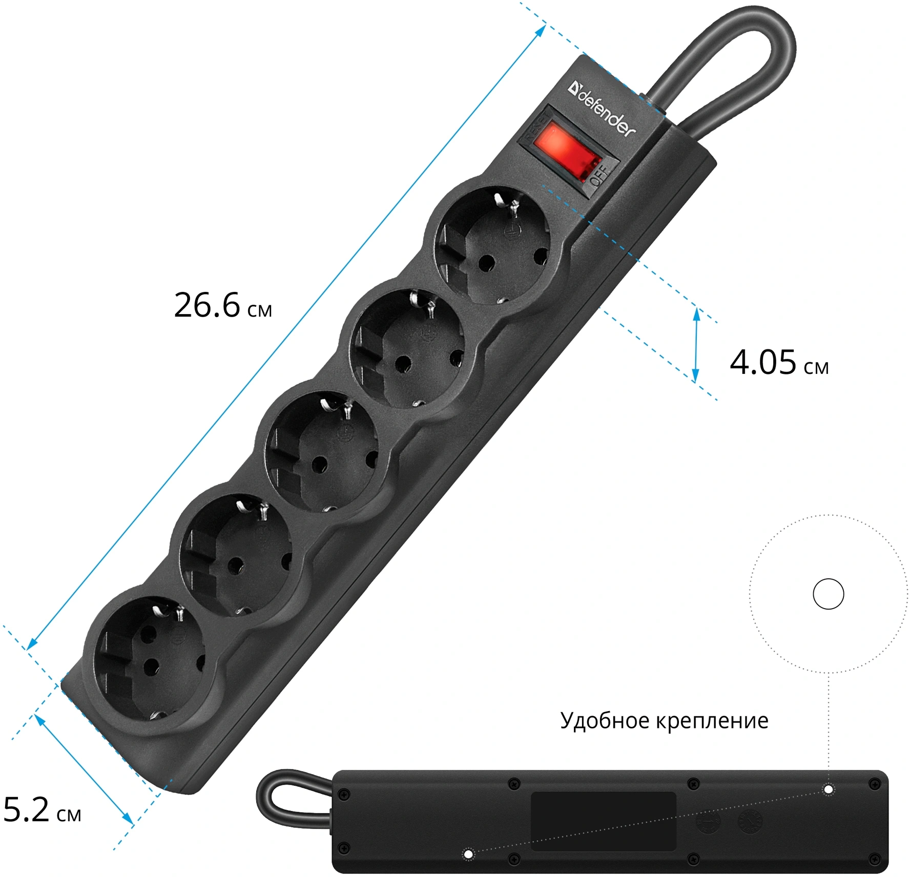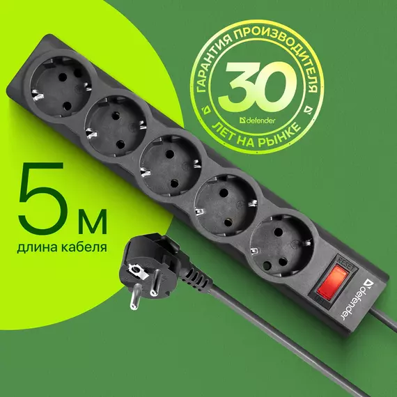 Сетевой фильтр Defender ES largo 5м (5 розеток) черный (коробка) [99499]
