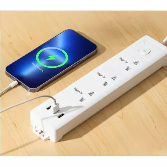 Сетевой фильтр Deli ET409 2м (2 розетки) белый (пакет ПЭ)