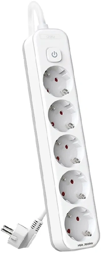 Сетевой фильтр Deli ET437 1.8м (5 розеток) белый (пакет ПЭ)