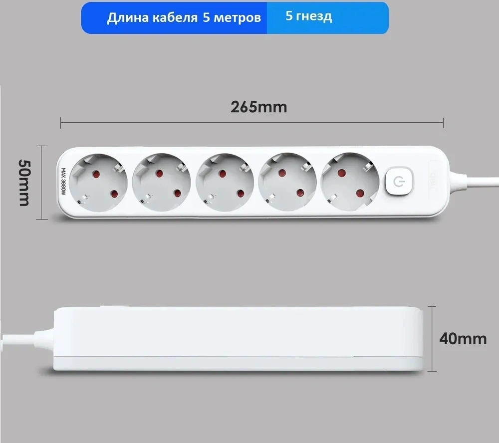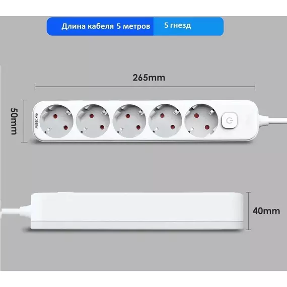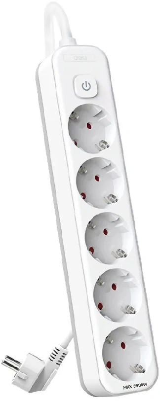 Сетевой фильтр Deli ET439 5м (5 розеток) белый (пакет ПЭ)