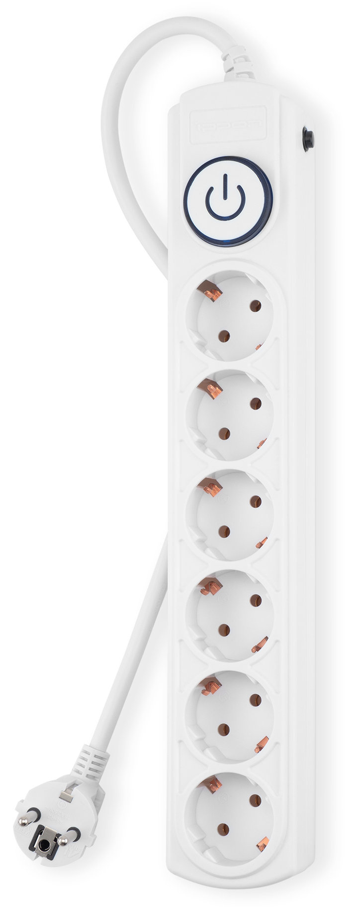| Особенности | 6 евророзеток с заземлением. Входная вилка Schuko. Защита от перегрузки. Защита от импульсов высокого напряжения. Защита от перетирания провода в месте входа в корпус фильтра. Ударопрочный негорючий корпус. Кнопка питания с индикатором сети. |