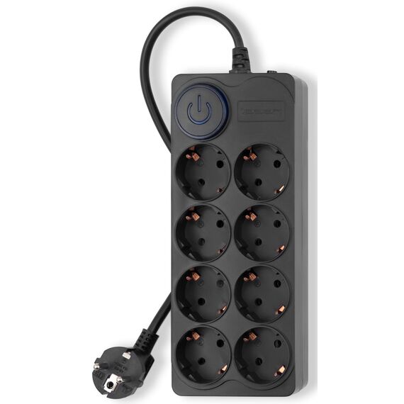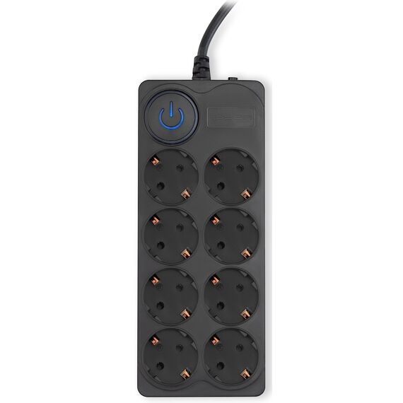 | Особенности | 8 евророзеток с заземлением. Входная вилка Schuko. Защита от перегрузки. Защита от импульсов высокого напряжения. Защита от перетирания провода в месте входа в корпус фильтра. Ударопрочный негорючий корпус. Кнопка питания с индикатором сети. |