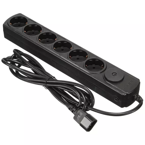 Модель IPPON BK-132 обладает специальным компьютерным разъемом питания для подключения к ИБП (IEC 320). С помощью этого сетевого фильтра легко увеличить количество выходных розеток для любого источника бесперебойного питания (фильтр оборудован 6-ю выходными розетками европейского типа).
