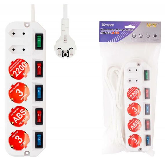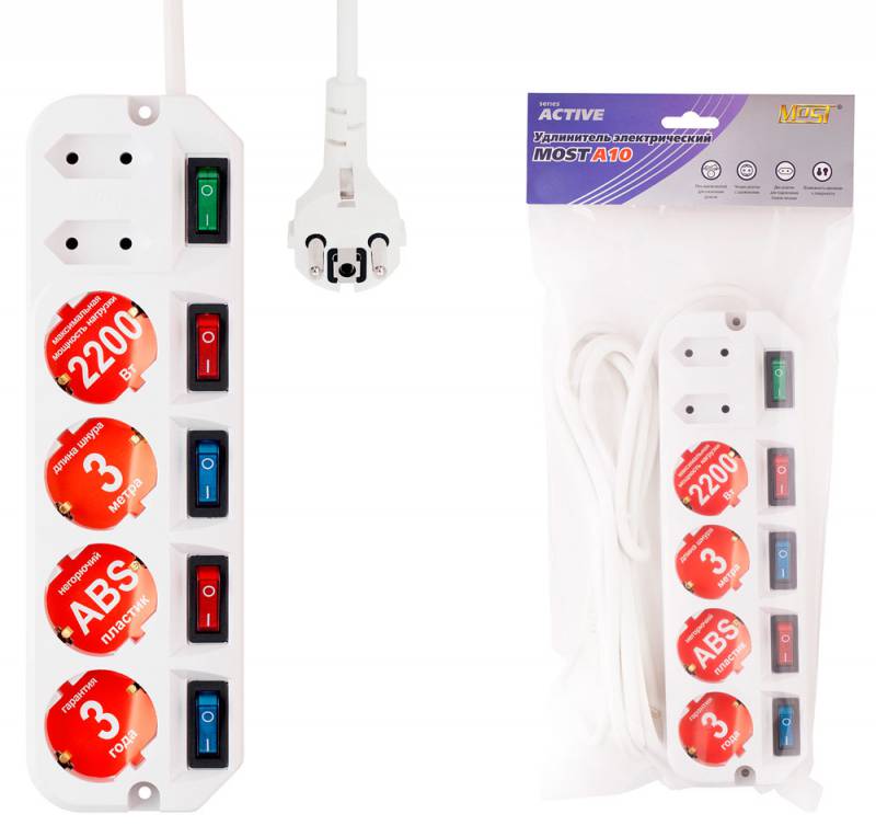 Сетевой удлинитель Most A10 1.6м (6 розеток) белый (коробка)