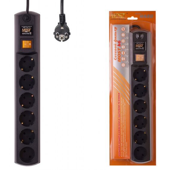 Сетевой фильтр Most H6 2м (6 розеток) черный (коробка)