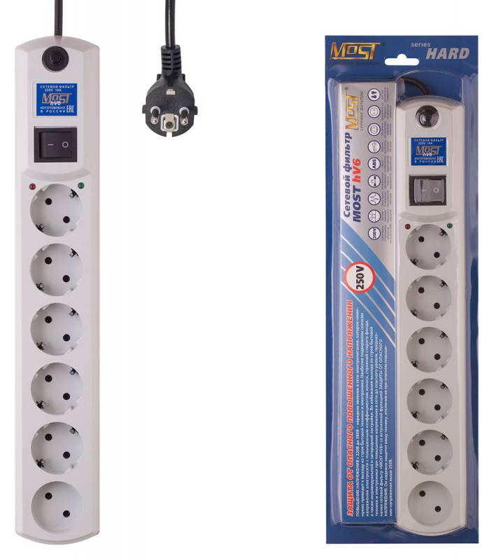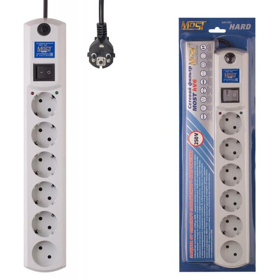 Сетевой фильтр Most HV6 2м 6 розеток белый (коробка)