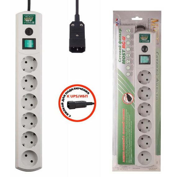 Сетевой фильтр Most RG-U 3М 3м (6 розеток) белый (коробка)