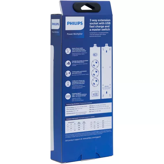 Сетевой фильтр PHILIPS CHP4336BB/51 3м (3 розетки) черный (коробка)