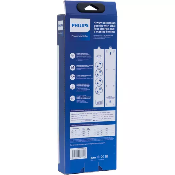 Сетевой фильтр PHILIPS CHP8246WA/51 2м (4 розетки) белый (коробка)