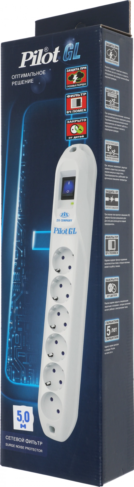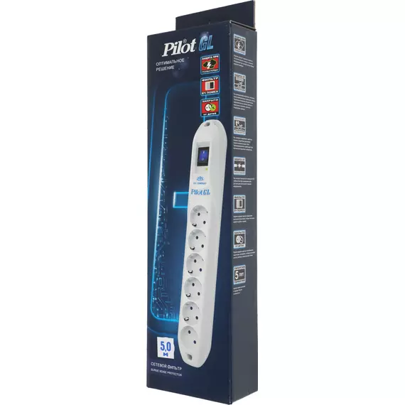 Сетевой фильтр Pilot 022-GL-6 5м (6 розеток) белый (коробка)