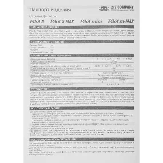 Описание Pilot mini [127]
