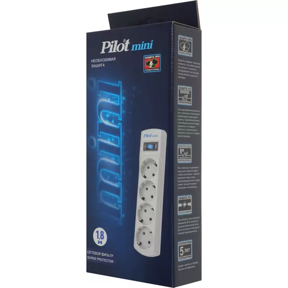 Сетевой фильтр Pilot mini 1.8м (4 розетки) белый (коробка) [127]