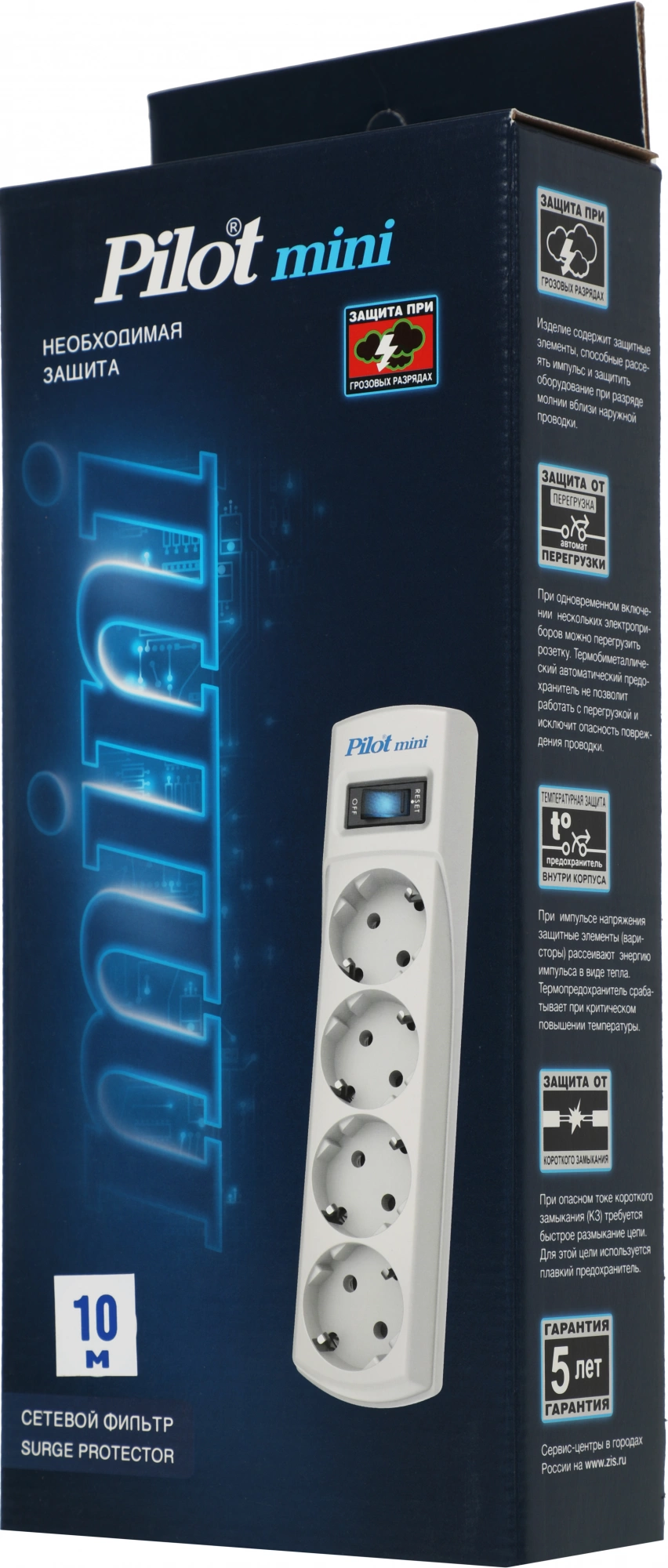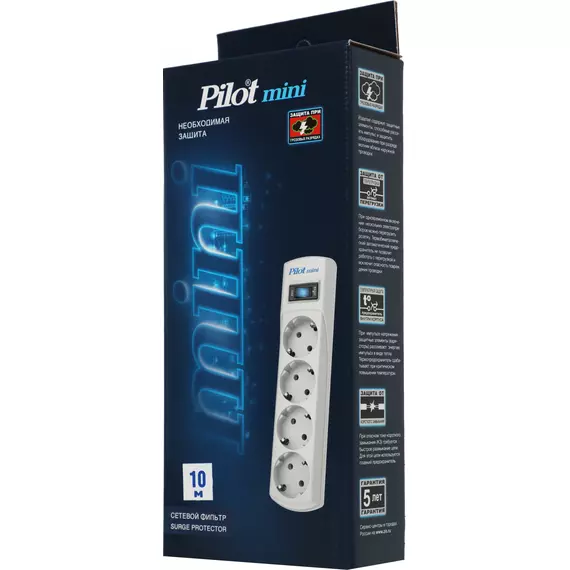 Сетевой фильтр Pilot mini 10м (4 розетки) белый (коробка) [131]