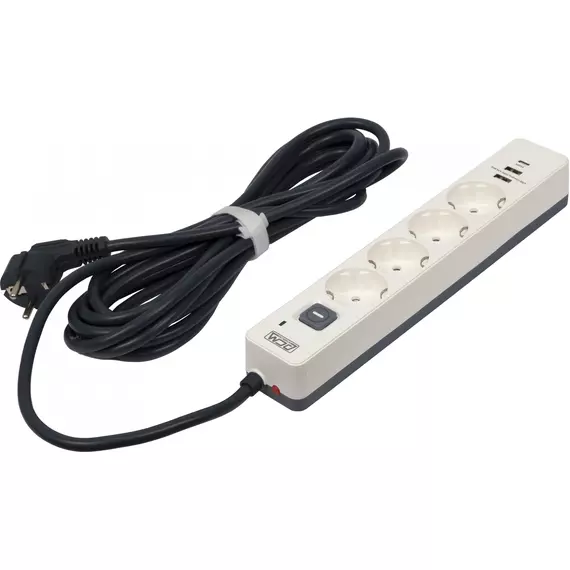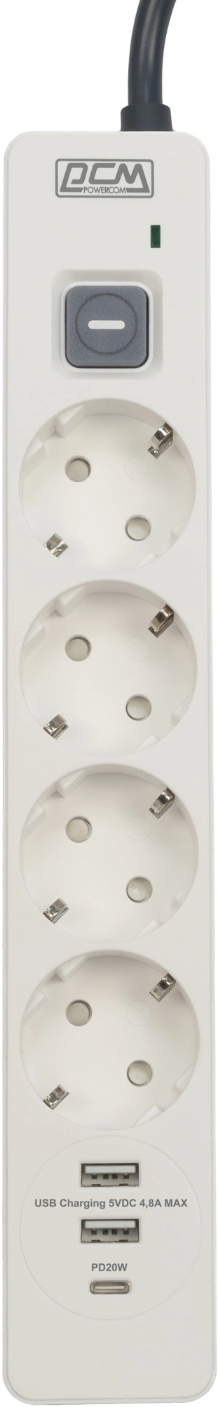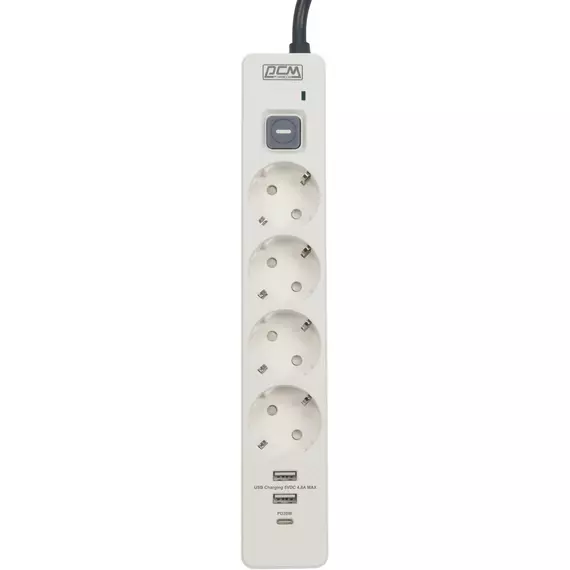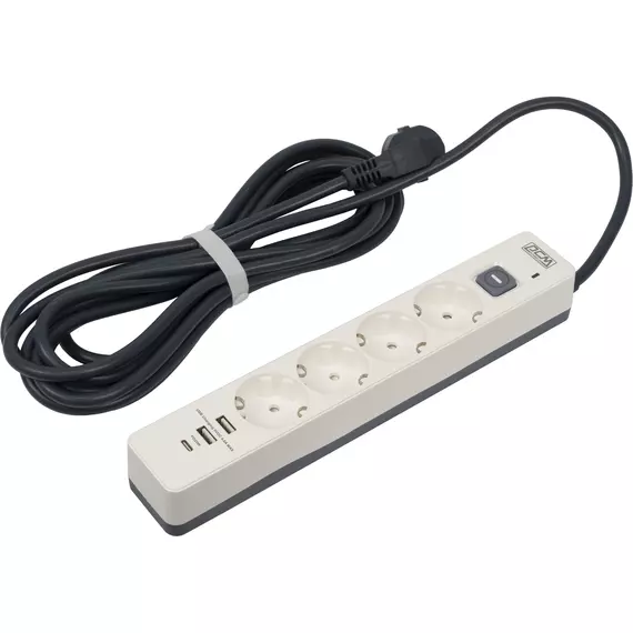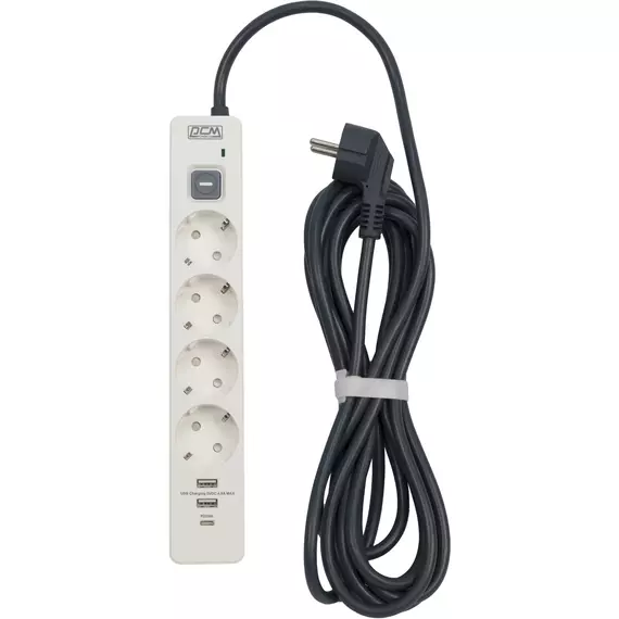 Сетевой фильтр PowerCom SP-01 USB2A1CW 3.0м (4 розетки) белый/серый (коробка) [SP-01 USB2A1CW 3,0М]