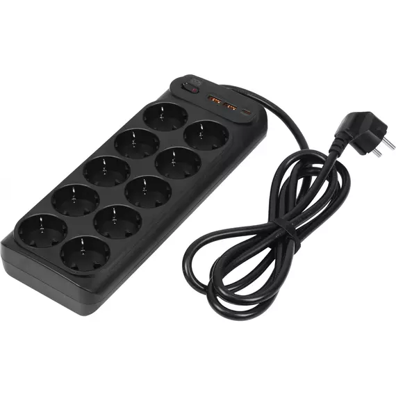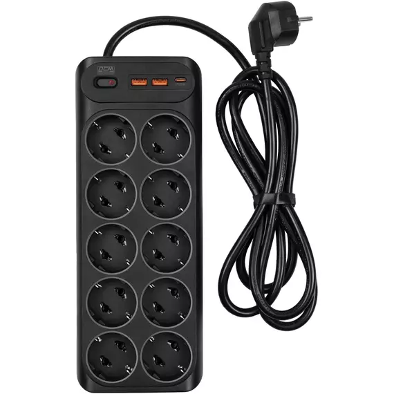 Сетевой фильтр PowerCom SP-10 USB2A1СB 3.0М 10 розеток черный (коробка)