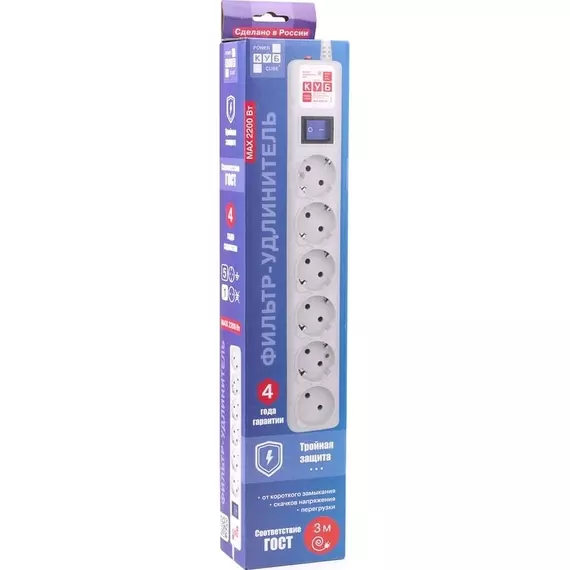 Сетевой фильтр Powercube SPG(5+1)-B-10-GREY 3м (6 розеток) серый (коробка)
