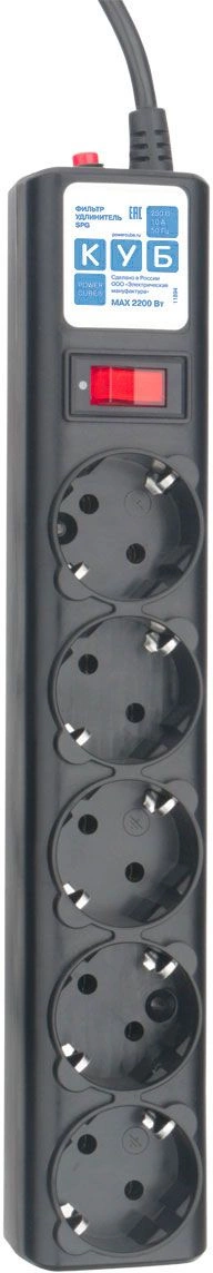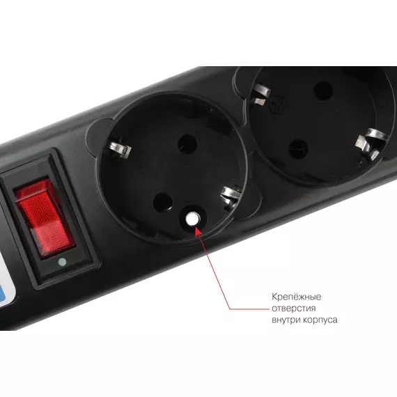 | Особенности | 5 розеток с заземлением. Однополюсный выключатель со световой индикацией. Автоматический, многоразовый предохранитель. Защита от импульсных помех и короткого замыкания. Материал корпуса соответствует требованиям пожаробезопасности. Отверстия для крепежа. |