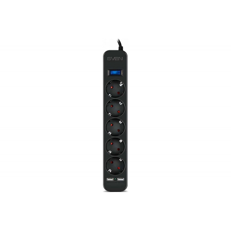 Сетевой фильтр SVEN SF-05LU 1.8 м 5 евро розеток, 2*USB(2.4А), черный, цветная коробка [SV-018832]