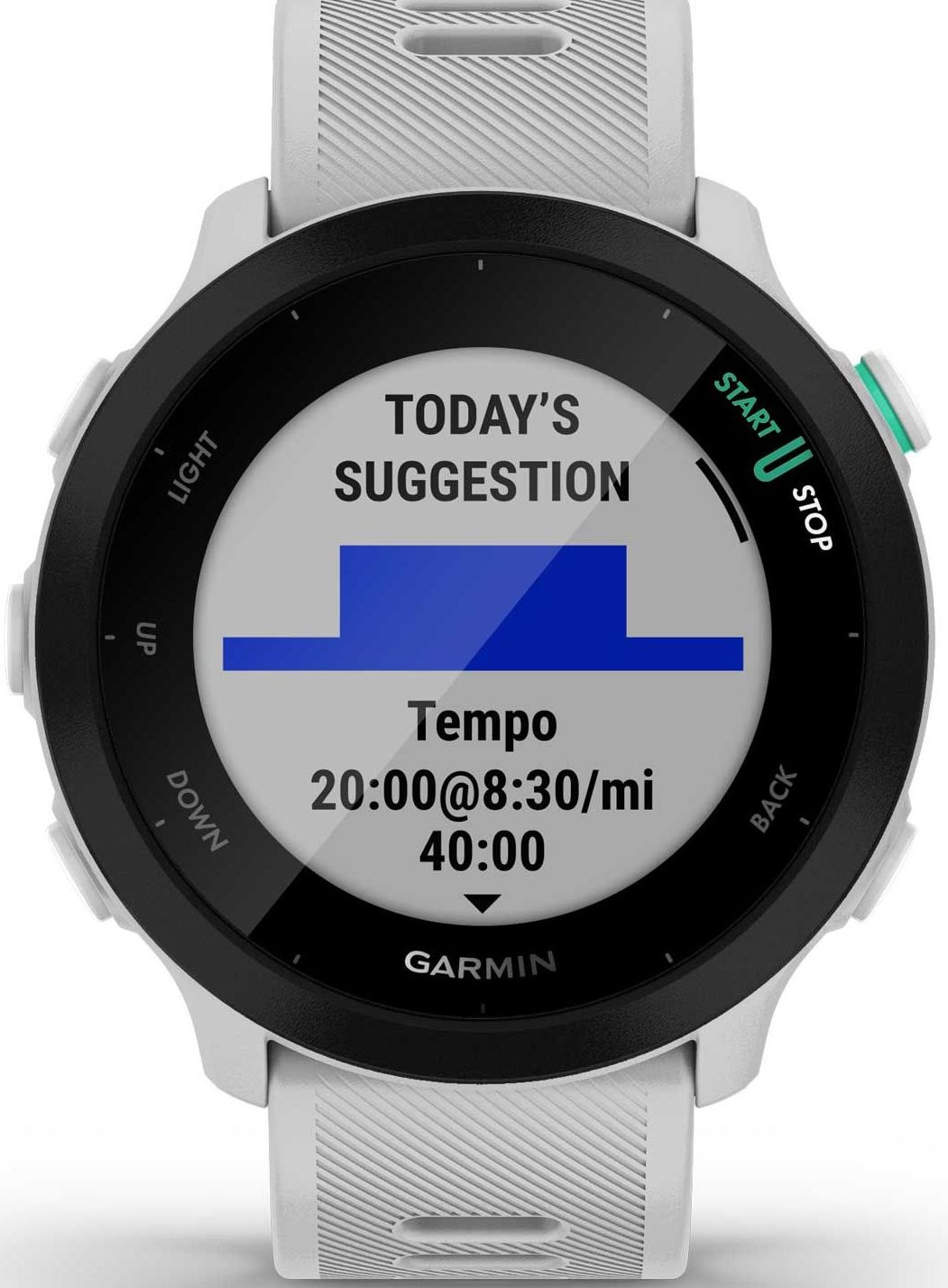 Смарт-часы GARMIN Forerunner 55 42мм 1.04" LCD корп.:белый рем.:белый разм.:брасл.:127-220мм [010-02562-11]
