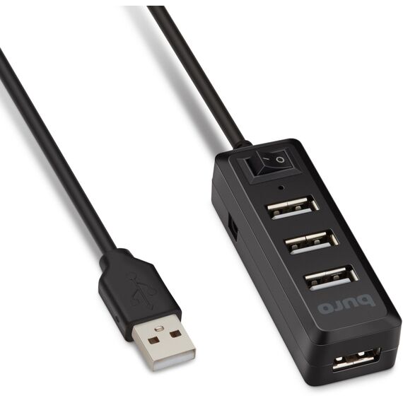 Разветвитель BURO BU-HUB4-0.5L-U2.0 4 порта USB 2.0, черный