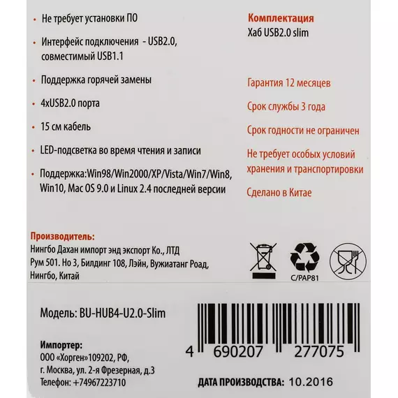 Наличие товара BURO BU-HUB4-U2.0-Slim