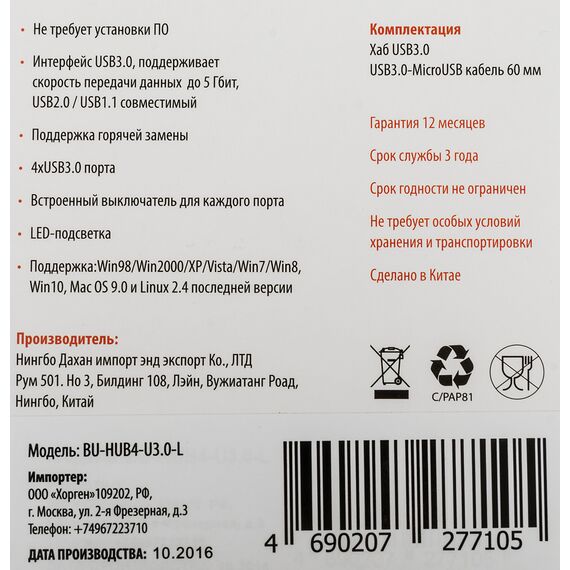 Особенности BURO BU-HUB4-U3.0-L