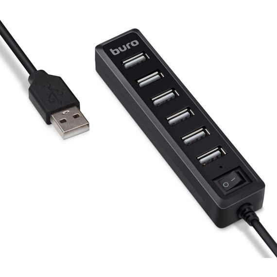 Разветвитель BURO BU-HUB7-1.0-U2.0 7 портов SB 2.0, черный