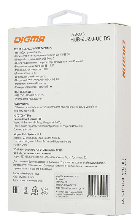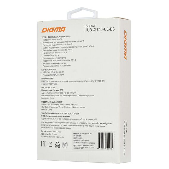 Наличие товара Digma HUB-4U2.0-UC-DS