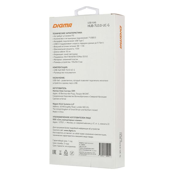 Разветвитель USB-C Digma HUB-7U3.0-UC-G 7порт. серый