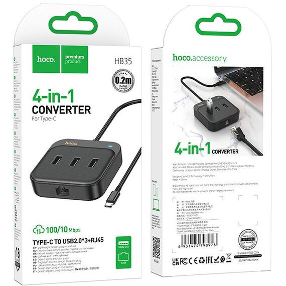 Разветвитель USB-C Hoco HB35 4порт. черный