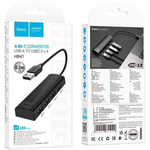 Разветвитель USB Hoco HB41 4порт. черный