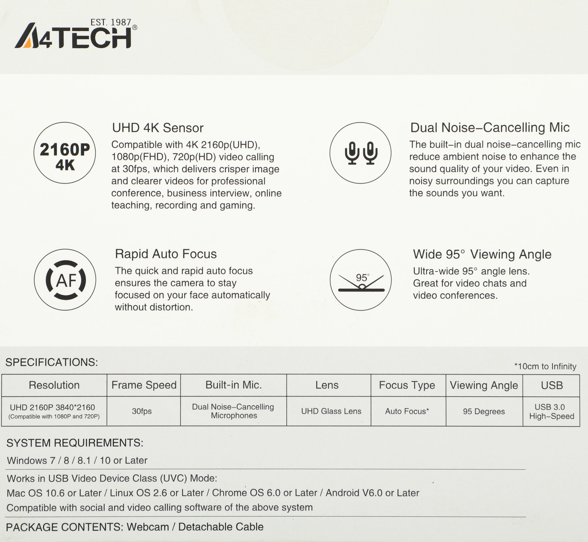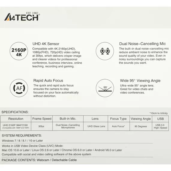 | Особенности | Автофокус, 4К разрешение. Возможность установки на штатив. |